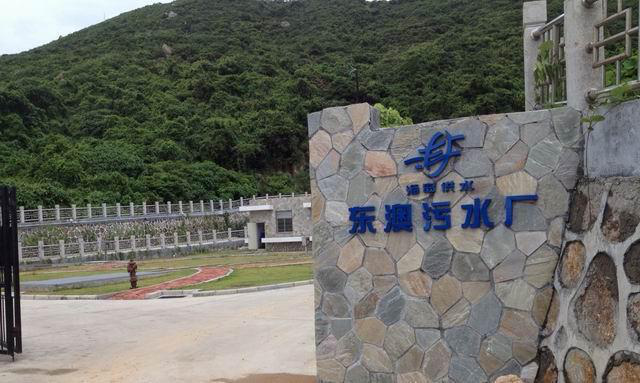 东澳污水厂位于大小竹湾,2015年12月完成环保验收,并投产。主要收集处理东澳岛南沙湾片区的居民和酒店的生活污水。设计总规模1000立方米/日,一期处理规模为500立方米/日,二期规模为500立方米/日,占地约2500㎡。处理工艺为生物接触氧化工艺,为了保持美丽的海岛环境,主要构筑物格栅井、调节池、水解酸化池、接触氧化池、二沉池、消毒池、集水井、污泥池等均以地埋的形式建设。目前年日均污水处理量约200立方米/日。出水水质可达到国家一级A标准。