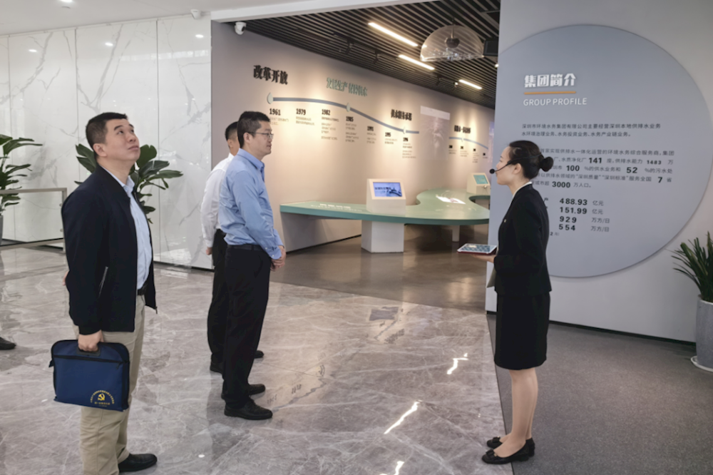 王子程一行首先参观了深圳环境水务集团总部一楼的会议展厅,在参观过程中,充分了解了深圳环境水务集团的发展历程,也了解了深圳环境水务集团的主要供排水管网的业务分布、架构,也深入学习了其“走出去”的优秀案例。