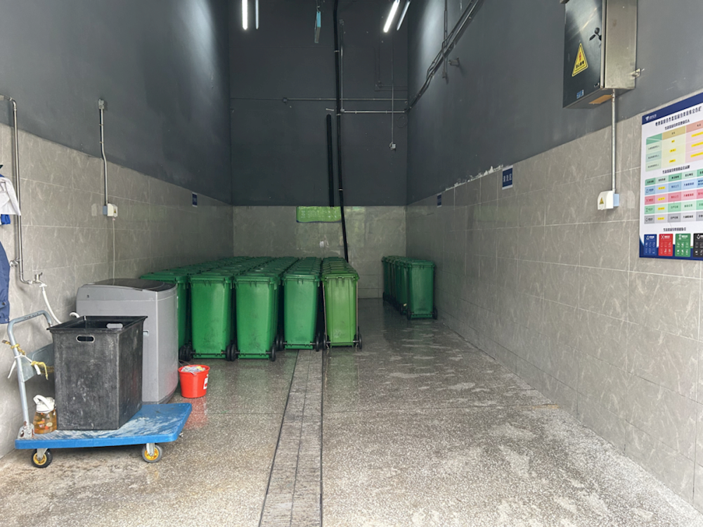 改造后的垃圾房实现了投放与收运便捷化、管理精细化、宣传可视化,颜值与实力双提升!管理更精细设置清晰的区域划分标识,“满桶区”与“空桶区”一目了然,极大地提升了垃圾投放的便捷性和规范性。现场投放工作人员表示:“没有分区之前,随意堆放既不美观也影响效率。现在一进来就知道桶该放哪里,方便多了!”清洁更便捷增设带围挡的专用洗桶区,有效防止污水外溅,避免二次清洁。“现在有了洗桶区,再也不怕洗桶时污水四处飞溅了,也减轻了我们清洁的工作量,非常实用!”清洁人员连连夸赞。收运更高效分区管理使收运人员能快速定位满桶,收运效率明显提升,配套的洗手设施也改善了作业卫生条件。收运人员对此深有感触:“现在收运可以直奔满桶区,不用再一个个掀开垃圾桶盖子检查,而且收运完垃圾,旁边就有洗手盆可以及时清洁,收运效率和个人卫生都更有保障了。”宣传更直观除了硬件设施的全面升级,垃圾房内还新增了宣传栏,展示餐厨垃圾“收运处置一体化”全流程、合作区餐厨垃圾收运分布情况及海宜公司简介等,有效增强了信息公开与环保知识普及功能,提升客户垃圾分类动力。