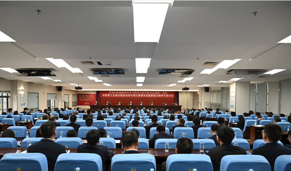11月19日,太阳成城集团tyc234cc古天乐召开干部大会,专题传达学习贯彻习近平总书记视察广东和出席第十五届全国运动会开幕式重要讲话重要指示精神,贯彻落实省委常委会会议、全省干部大会及市委常委会会议、珠海市和横琴粤澳深度合作区干部大会会议精神,对集团学习宣传贯彻工作进行全链条动员、系统性安排。会议由集团党委副书记陈根洪主持,集团党委副书记、总经理陈少幸传达相关会议精神,集团党委书记、董事长孙成作动员部署讲话。