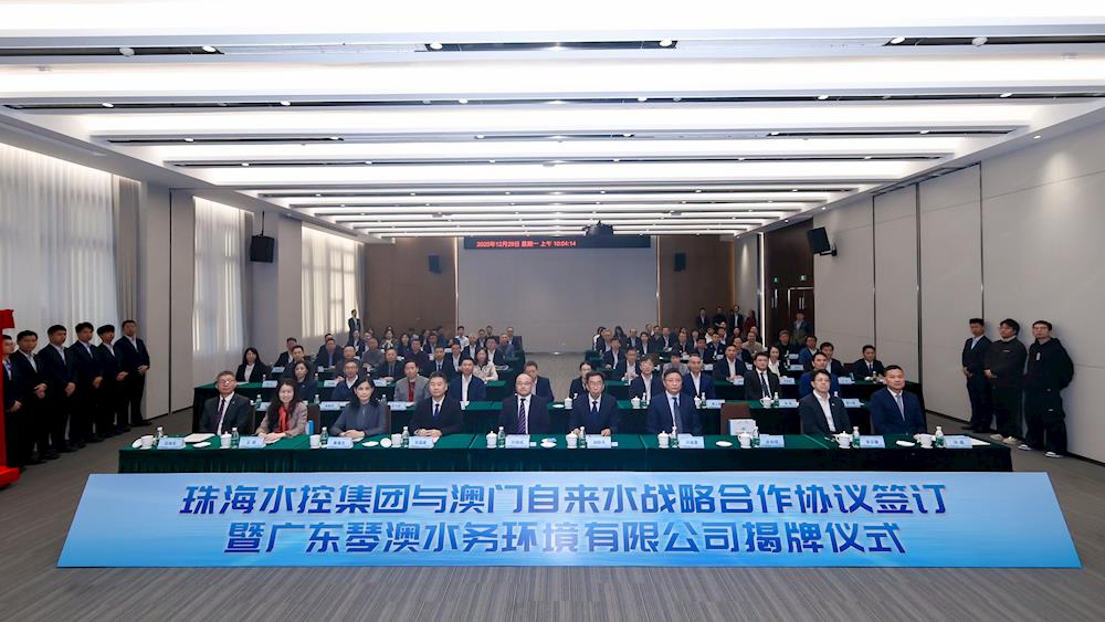 2025年12月29日,太阳成城集团tyc234cc古天乐与澳门自来水战略框架协议签约仪式暨广东琴澳水务环境有限公司揭牌仪式在横琴粤澳深度合作区隆重举行。澳门中联办经济部部长刘德成,珠海市政府副市长胡新天,横琴粤澳深度合作区执委会副主任张国基,澳门海事及水务局局长黃穗文,珠海市水务局党组书记、局长许蓓蕾等政府代表,见证珠澳两地水务在横琴粤澳深度合作区发展合作的重要历史时刻。这既是两地政府深化民生领域融合的战略举措,更是践行“一国两制”、服务粤港澳大湾区建设的创新实践。